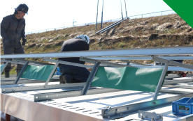 フロート架台の組立は、高度な施工技術を必要としない簡易な構造だから、施工初心者でも1日の講習で施工可能です。1日あたり12台~20台のフロート架台を制作した実績があります。(仮設規模により変動します)フロート架台15台を制作した場合、野建てソーラーの造成工事・架台基礎工事・架台組立モジュール設置135枚に相当し、野建ソーラーの施工効率を上回ります。